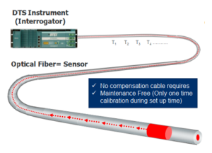 Hệ thống hoạt động dựa trên hiệu ứng Raman, cho phép đo và giám sát nhiệt độ liên tục dọc theo toàn tuyến lò thông qua sợi cáp quang, thay vì các cảm biến điểm truyền thống. Giải pháp này đặc biệt phù hợp với môi trường hầm lò có nguy cơ cháy nổ cao, giúp phát hiện sớm các điểm tăng nhiệt bất thường.